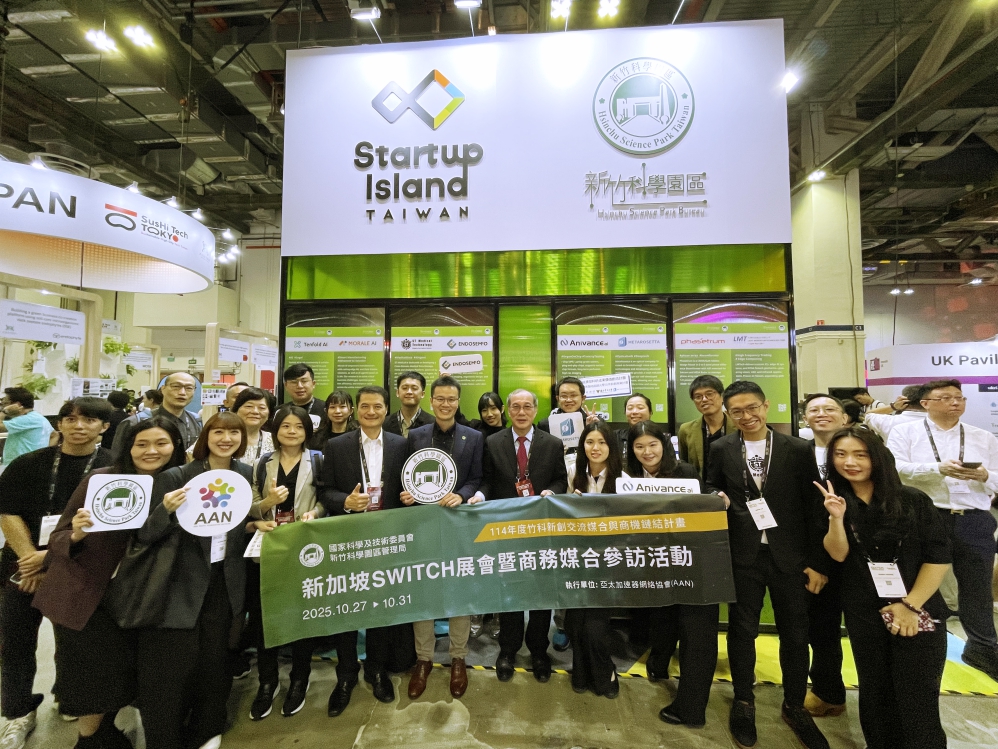 To promote the integration of Hsinchu Science Park’s innovation energy with the international market, the Hsinchu Science Park Bureau of the National Science and Technology Council led eight promising startup teams from the park to Singapore from October 27 to October 31 to participate in Asia’s leading innovation event, “SWITCH 2025.” A series of in-depth business networking and startup ecosystem engagement activities were also conducted to expand market opportunities for Hsinchu startups in Southeast Asia.